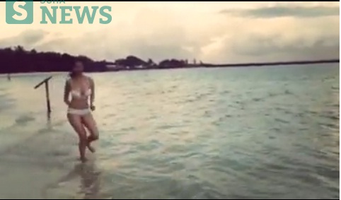 Trong đoạn clip quảng bá cho một resort cao cấp của Ngọc Trinh được chia sẻ trên mạng ghi lại cảnh Ngọc Trinh thực hiện một vài động tác chạy nhảy, nô đùa trên bãi biển trong bộ bikini màu trắng đã 'tố cáo' khuyết điểm này của cô.