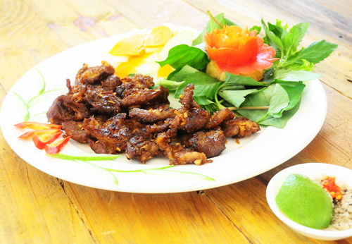 Ăn kèm: Bánh ướt, rau sống, dưa ngâm chua, muối tiêu chanh.