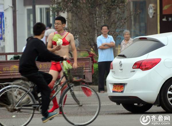 Gần đây, trên các con phố nào nhiệt ở Liêu Thành, Sơn Đông, Trung Quốc. Một nhóm thanh niên đã diễn lại cảnh cưới xin ngày xưa với chú rể gây sốc bằng cách chỉ mặc duy nhất bộ đồ lót phụ nữ, tất lưới rách, áo nịt ngực, tay cầm cải thảo diễu trên phố.