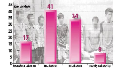 Tuy nhiên, ở một số tội có sự dụng bạo lực hoặc có tính chất nguy hiểm cao cho xă hội lại chiếm tỷ trọng đáng kể trong cơ cấu tội phạm do trẻ vị thành niên gây ra. Cụ thể như: Cố ư gây thương tích: 6.087/35.654 đối tượng (chiếm 17.07% tăng trên 8%); Cướp giật tài sản: 3.366/35.654 đối tượng (chiếm 9,44% tổng số tăng 5%); Cướp tài sản: 4.898/35.654 đối tượng (chiếm 13,74% tăng gần 10%); cưỡng đoạt: 1.097/35.654 đối tượng (chiếm 3,06% tăng 1,7%); Giết người: 1.682/35.654 đối tượng (chiếm 4,72% tăng 3%); Mua bán vận chuyển ma túy trái phép: 1.162/35.654 đối tượng (chiếm 3,4% tăng so với trước 1,2%)”.
