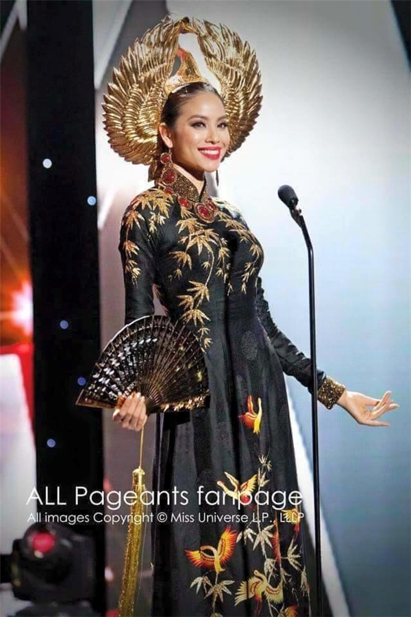 Sau khi đêm bán kết kết thúc, các cô gái đã ngay lập tức chuẩn bị cho phần thi trang phục truyền thống. Như thông tin đã đưa trước đó, nhà thiết kế Thuận Việt đã chuẩn bị cho Phạm Hương hai mẫu thiết kế với hai màu sắc đối nghịch: trắng - đen. Và cuối cùng, Phạm Hương đã lựa chọn thiết kế màu đen nhằm tôn lên nét mạnh mẽ, quyền quý, sang trọng. Bộ trang phục truyền thống của Phạm Hương được đánh giá cao bởi sự đơn giản, tinh tế.