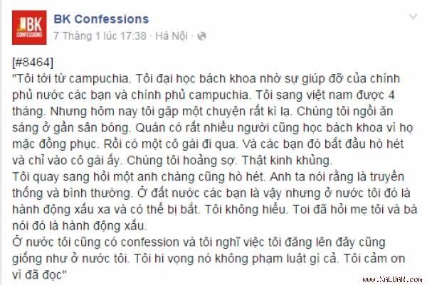 Những ngày qua, dòng chia sẻ của một sinh viên Campuchia được đăng tải trên trang confessions của trường Đại học Bách Khoa Hà Nội đã khiến cộng đồng mạng xôn xao.