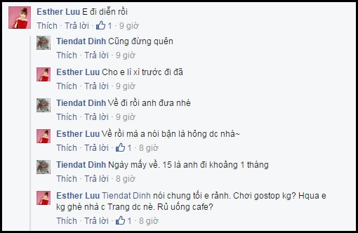 Ngay lập tức, Hari Won phản hồi rằng cô bận đi diễn và đòi lì xì năm mới từ bạn trai cũ. Đinh Tiến Đạt cũng vui vẻ đồng ý và hứa rằng khi nào gặp nhau anh sẽ thực hiện lời hứa. Qua đoạn chat ngắn, có thể thấy mối quan hệ giữa Hari Won và Đinh Tiến Đạt vẫn rất thân thiết.