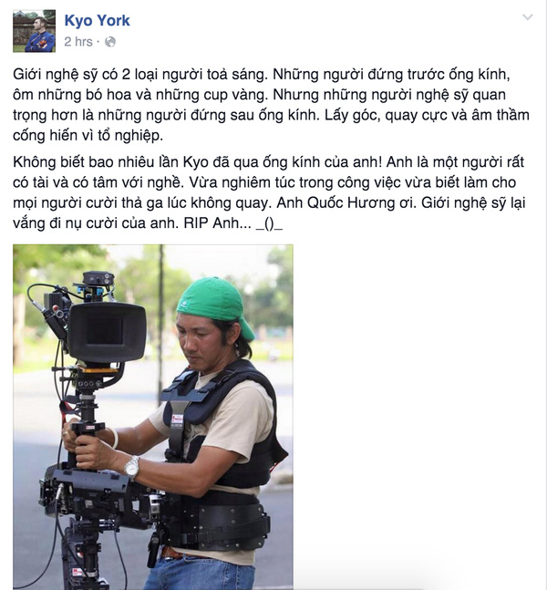 Đạo diễn Tuấn Chelsea là một trong những người đầu tiên thông báo tin buồn từ nhà quay phim Quốc Hương.