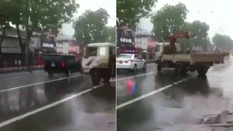 Khi đoàn xe đang hộ tống Tổng thống Obama ra sân bay Nội Bài thì một chiếc xe tải chạy ra giữa đường và quay đầu trên phố, khiến nhiều người xem không khỏi giật mình.