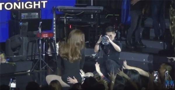 Tuy nhiên, nhiều người đã vô cùng "ngỡ ngàng" khi thấy một số khán giả tỏ ra phấn khích thái quá, vô tư đưa tay sờ soạng vòng 3 của "nữ hoàng giải trí". Nhiều người đặt ra câu hỏi tại sao Hồ Ngọc Hà lại tỏ ra thoải mái, không hề ngại ngùng để mọi người đụng chạm.