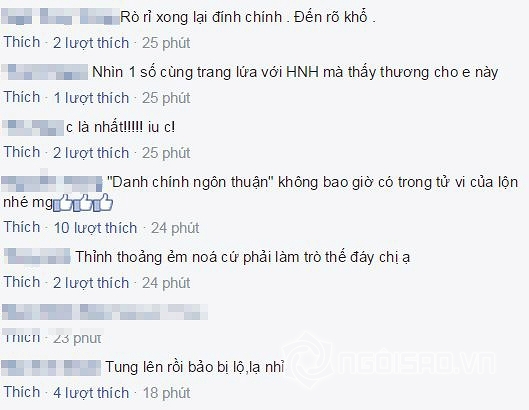 Dưới ḍng trạng thái ấy, người vợ 'chính thất' của vị đại gia kim cương nhận không ít lời động viên, an ủi và ủng hộ của dư luận. Đồng thời, cũng không ít dưới vịn theo ḍng trạng thái ấy để mỉa mai giọng ca Tội lỗi. Một độc giả cảm thán: "Ṛ rỉ xong lại đính chính, rơ khổ". Hay một tài khoản khác cũng châm biếm: "Thỉnh thoảng em nó phải làm tṛ thế đấy chị ạ!".