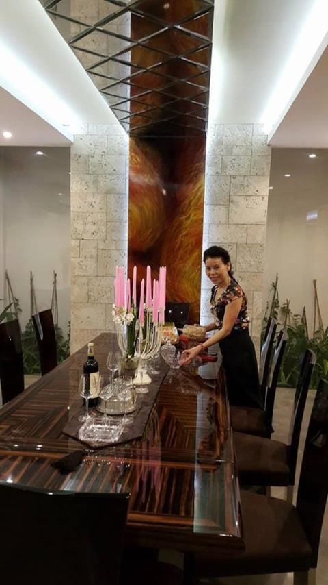 Phòng ăn khá lớn, thiết kế theo phong cách châu Âu. Từng góc nhỏ trong căn nhà đều do chính Hà Hồ trang trí.