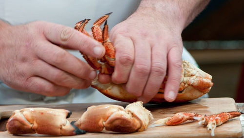 Bước 4: Rồi lấy phần thịt màu trắng từ chân và càng cua.