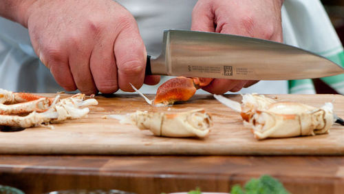 Bước 3: Dùng sống dao đập dập càng và chân cua.