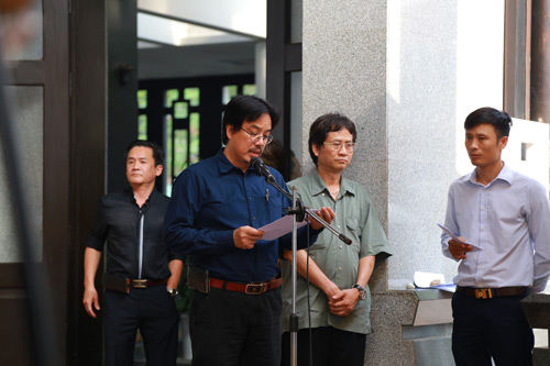 Trưởng đoàn kịch 2, Đại diện Nhà hát tuổi trẻ Nguyễn Sĩ Tiến đọc điếu văn đưa tiễn NSƯT Duy Thanh.