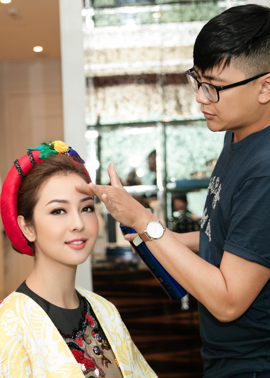 Hoa hậu cho biết, vì con thứ ba còn nhỏ nên cô tranh thủ làm việc trong 3 giờ đồng hồ, sau đó ra sân bay để trở về Hà Nội ngay trong đêm.