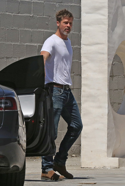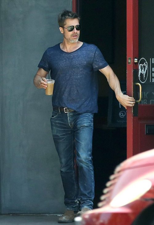 Brad Pitt rời quán cafe ở Los Angeles sau bữa trưa cùng bạn bè hôm 6/7. Anh cầm cốc cafe đá quay về studio điêu khắc để tiếp tục làm việc.