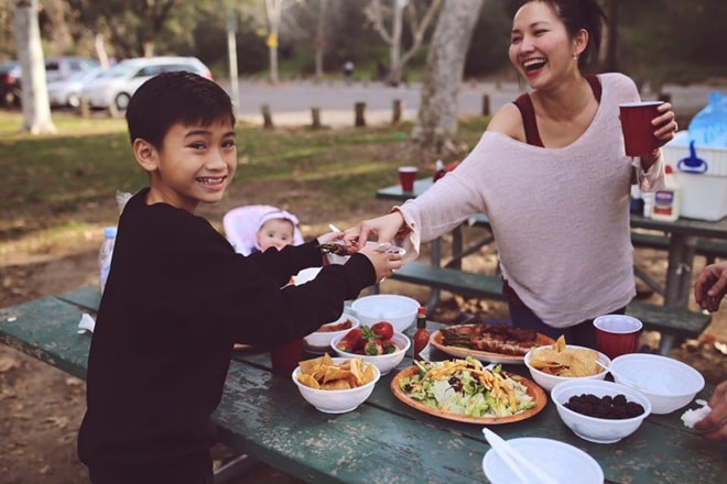 Rất dễ bắt gặp hình ảnh ầy hạnh phúc này của gia đình Kim Hiền