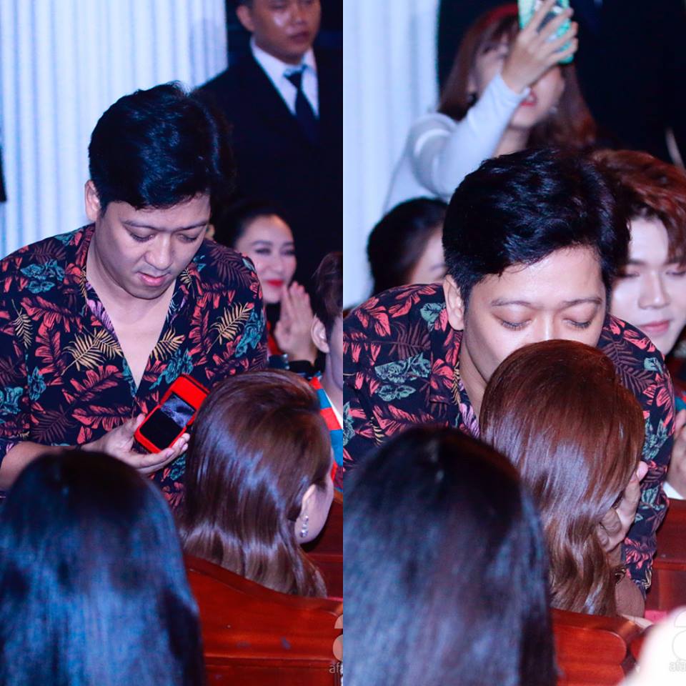 Nhận được 2 giải thưởng, Trường Giang gửi lời cảm ơn ngắn gọn. Sau đó, anh tỏ ra hồi hộp, xin phép được làm điều một lần trong đời, không có lần thứ 2. Anh mang nhẫn kim cương được cất trong bó hoa ra và hỏi khán giả có thấy người yêu Nhã Phương đang ngồi ở đâu.