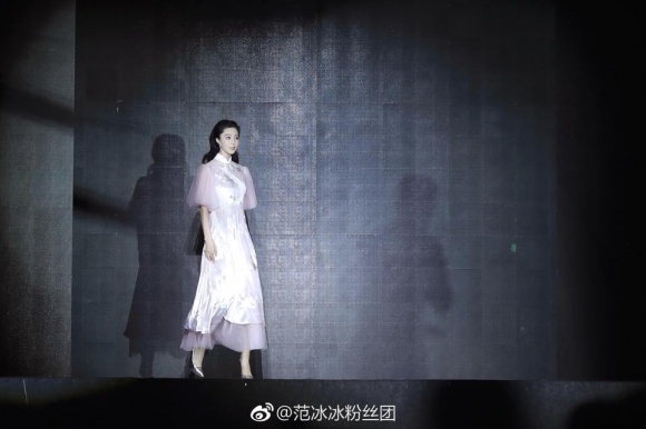 Mấy hôm trước, Phạm Băng Băng bị nhiều người chê vì để kiểu tóc xoăn, trông già quá thể. Đáp lại Phạm Băng Băng lập tức tái xuất đẹp như tiên nữ tỏa sáng trên sân khấu. Trong thiết kế váy xòe dịu dàng, Phạm Băng Băng gây được ấn tượng đặc biệt trên sân khấu vì vẻ đẹp tỏa sáng như tiên nữ