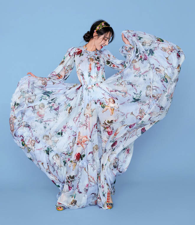 Địch Lệ Nhiệt Ba trông như "nữ thần nhiệt đới" khi diện váy của Dolce & Gabbana