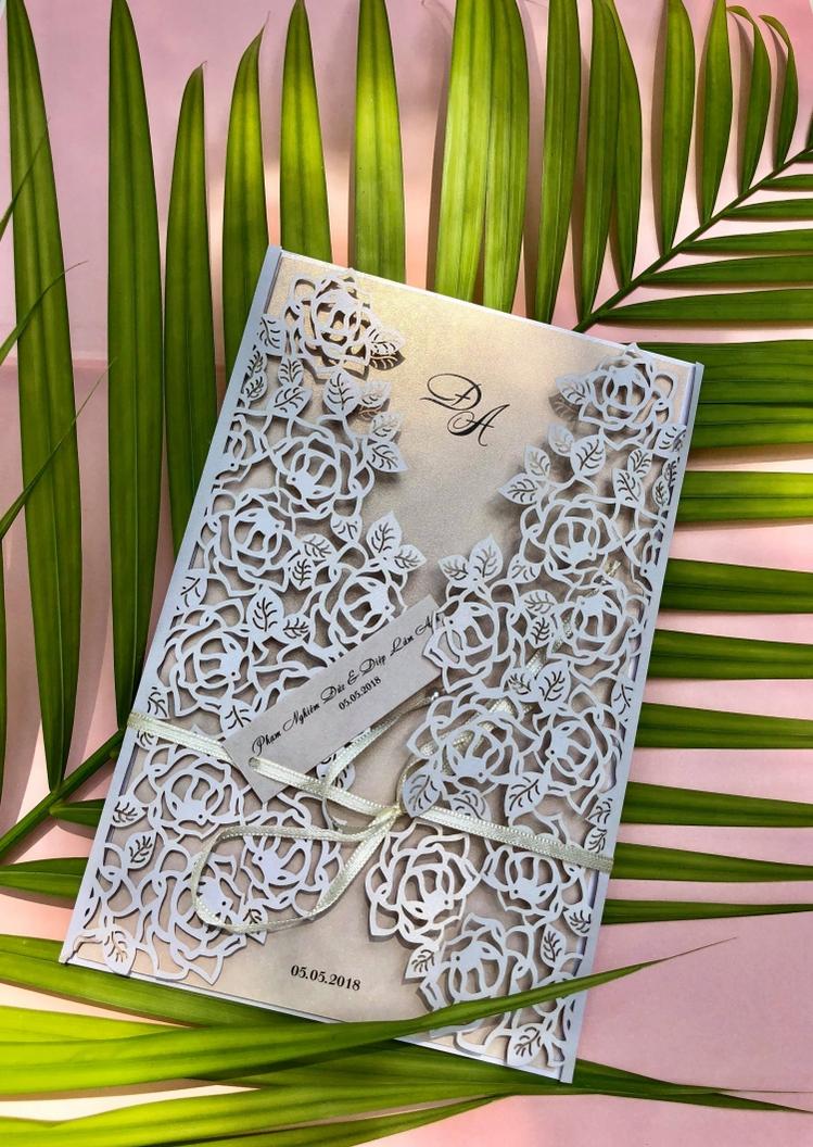 Thiệp cưới của cặp đôi được MC Anh Khoa tiết lộ.