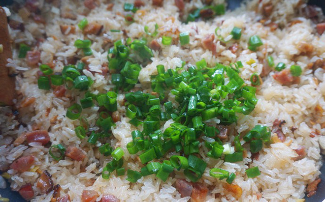 Cuối cùng, thêm dầu hào, nước tương, muối và hành lá vào đảo đều và thưởng thức món xôi mặn Quảng Đông siêu hấp dẫn nhé!