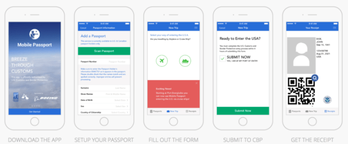 Chỉ cần làm theo năm bước này là có thể nhập cảnh vào Hoa Kỳ. (Hình: Mobile Passport)
