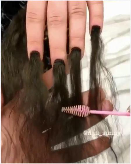 Tiệm làm móng Nail Sunny đến từ Moscow, Nga mới đây đã tung ra phương pháp làm đẹp móng tay kiểu mới trên trang Instagram của mình. Trong đoạn video được chia sẻ trực tuyến, người ta có thể thấy thợ làm móng gắn tóc giả lên móng tay và còn dùng chổi mascara, máy duỗi để tạo kiểu.