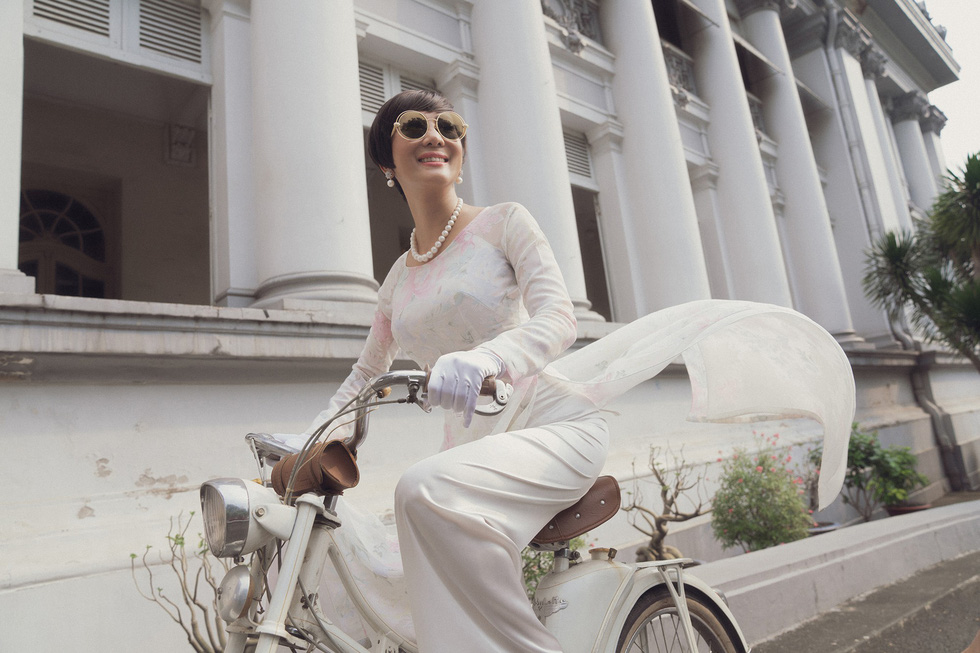 Ký ức Sài Gòn phần nào được truyền tải qua tà áo dài xưa của nhà thiết kế Võ Việt Chung với những bộ áo dài có chít eo nhỏ tôn dáng cao gầy, cách vấn tóc tôn cổ thanh tú…