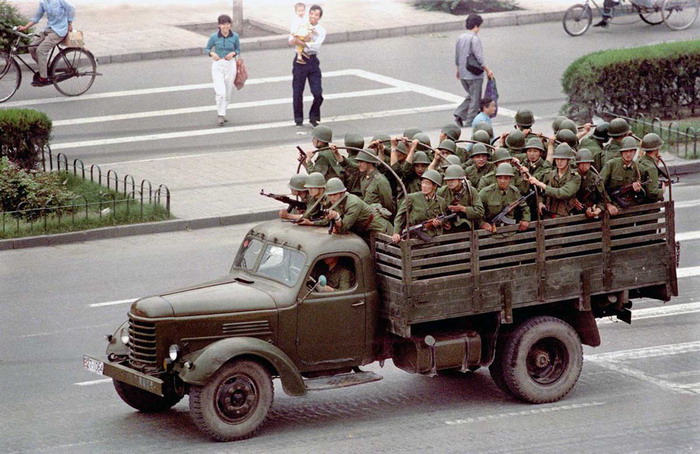 Nhiều quốc gia cáo buộc quân đội Trung Quốc đă sử dụng súng trường tự động và xe tăng đă tiến hành đàn áp mạnh tay, giết chết ít nhất vài trăm người biểu t́nh đang cố gắng để ngăn chặn bước tiến của quân đội về phía Quảng trường . C̣n về phía chính phủ Trung Quốc th́ họ cho rằng quân đội Trung Quốc đă không dùng súng đạn để bắn vào người biểu t́nh mà chủ yếu dùng gậy gộc, dùi cui, hơi cay để giải tán cuộc biểu t́nh. Chính phủ Trung Quốc cũng cáo buộc xung đột nổ ra là do phe biểu t́nh đă tấn công, giết hại một số binh sỹ từ trước đó. Trong khi đó theo một bức điện bí mật từ Đại sứ quán Hoa Kỳ tại Bắc Kinh bị phát tán bởi Wikileak th́ binh lính Trung Quốc đă nổ súng vào những người biểu t́nh ở bên ngoài trung tâm Bắc Kinh chứ không phải là tại quảng trường.