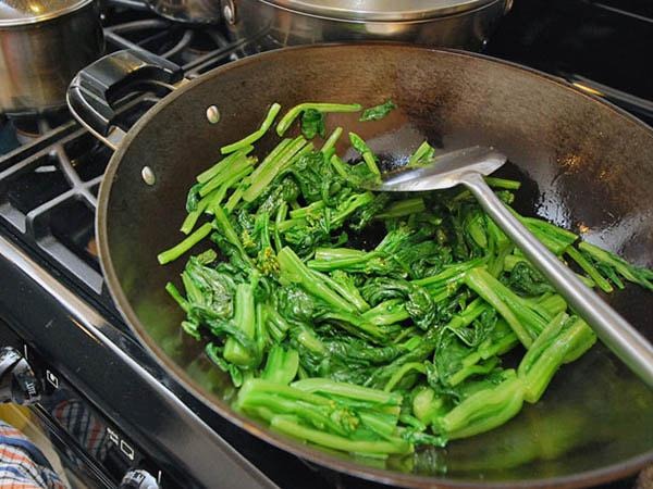 Việc đảo nhanh tay sẽ giúp rau nhanh chín và nhanh ngấm gia vị mà màu xanh vẫn giữ được cho đến khi rau chín.