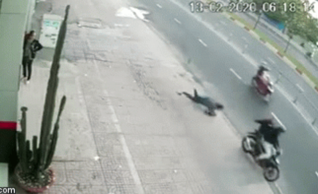 Một người phụ nữ bị 2 nam thanh niên chở nhau trên xe máy phóng vụt qua, giật mạnh túi xách đeo trên tay, khiến quá bất ngờ nên người phụ nữ này đã không kịp phản ứng, ngã sấp mặt xuống đường, nằm bất động, làm cho nhiều chị em kinh hãi khoảnh khắc cướp giật này.