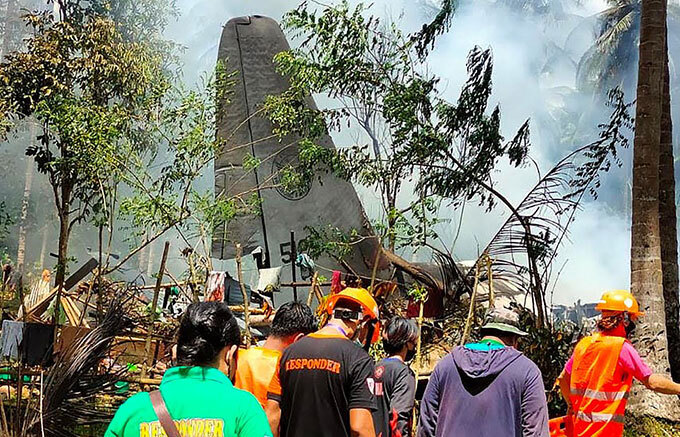 Theo một quan chức, ít nhất 45 người đă thiệt mạng và hàng chục người bị thương sau khi chiếc Lockheed C-130 Hercules của Không quân Philippines chở binh sĩ bị rơi khi đang chuẩn bị hạ cánh xuống sân bay Solo. Chiếc máy bay đă rơi xuống làng Bangkal, thuộc thị trấn miền núi Patikul ở tỉnh Sulu, và bốc cháy.