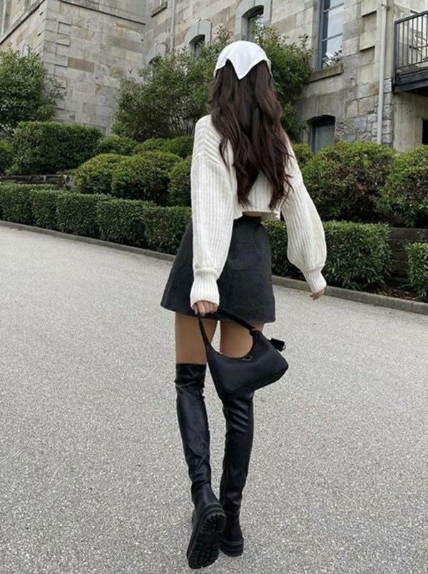 Nếu có lợi thế về chiều cao, bạn gái cũng có thể chọn boot đùi da dài qua gối.