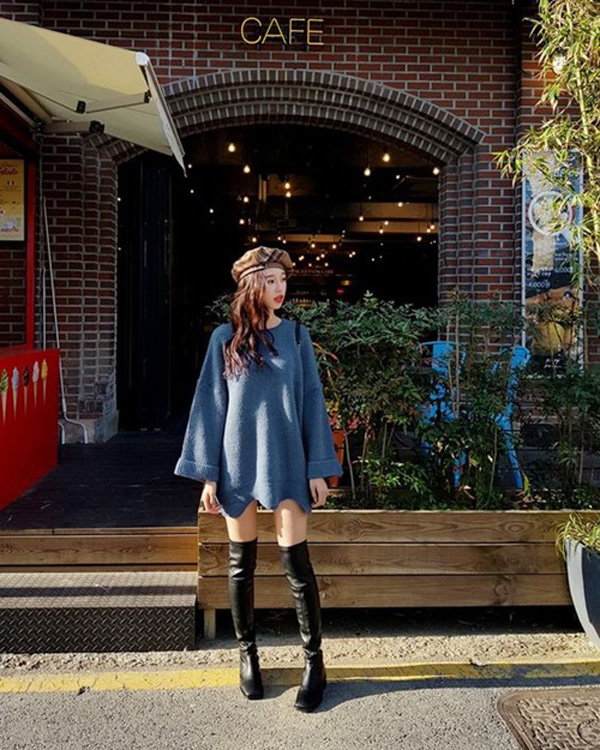 Boot đùi da mix với áo giấu quần cũng là gợi ý tuyệt vời giúp nàng tăng vẻ sexy trong mùa lạnh.