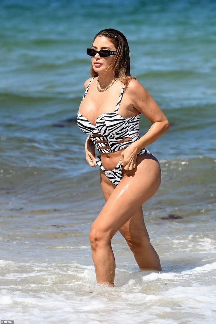Larsa Pippen được trông thấy đi biển ở Miami (Florida, Mỹ) mới đây với bộ áo tắm 2 mảnh màu hồng cánh sen rực rỡ.