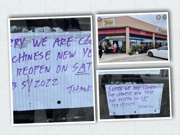 Chỉ là hôm nay qua ăn, trên map vẫn đề mở cửa nhưng tới nơi thì đóng. Ok quay về thôi. Ra đến xe thấy có gì là lạ ngờ ngợ liền quay lại đọc kỹ cái bảng “chinese new year”.