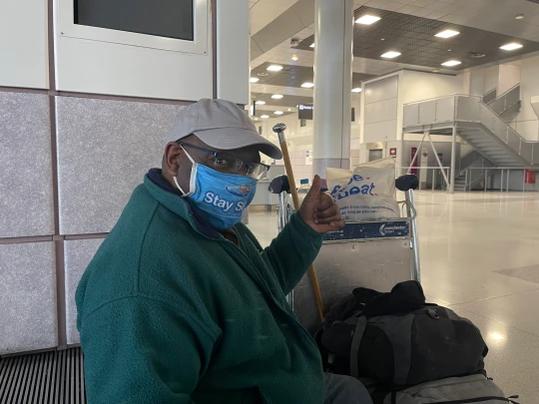 Tim Samunyai đến Sân bay Manchester sớm hơn 13 tiếng so với giờ bay đến Zimbabwe. Ảnh: MEN Media.