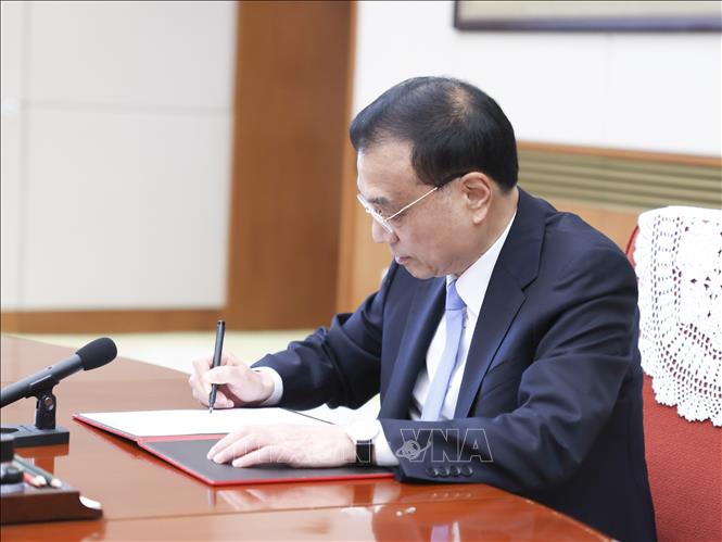 Thủ tướng Trung Quốc Lư Khắc Cường kư sắc lệnh bổ nhiệm ông Lư Gia Siêu làm Trưởng khu hành chính đặc biệt Hong Kong, tại Hội nghị toàn thể lần thứ 7 của Quốc vụ viện ở Bắc Kinh, ngày 20/5/2022. Ảnh: THX/TTXVN