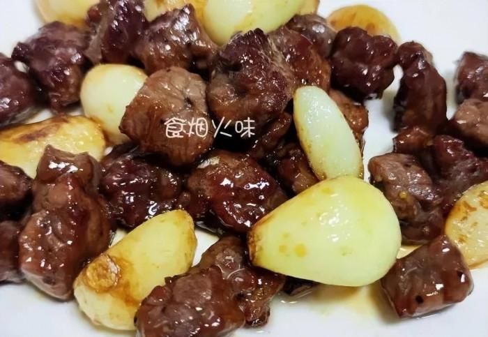 Tỏi sau khi chiên chín mềm, dẻo và thơm ngon, không còn vị cay nữa. Thịt bò thái hạt lựu mềm và ngon, ngọt, kết hợp với mùi thơm của tỏi rất hấp dẫn, ai cũng thích mê.