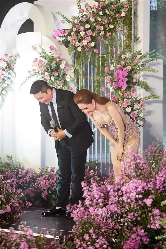 ''Cho phép vợ chồng Băng cúi đầu cảm ơn những cộng sự của mình đã đồng hành với vợ chồng Băng trong suốt những năm qua. Cảm ơn các ê kip đã trang trí buổi tất niên siêu VIP cho Băng.