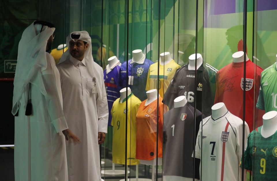 Những chiếc áo được trưng bày phía sau các tấm kính tại tòa nhà 18 trong trung tâm văn hóa Katara. Một quả bóng quảng cáo cho World Cup 2002 có chữ ký Pele và một thẻ nhân viên của trận chung kết năm 1966 tại sân Wembley xuất hiện tại triển lãm.