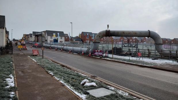Đường ống khổng lồ sẽ tiếp tục thượng vị cho đến ít nhất là cuối tháng 3. Ảnh: Anglian Water