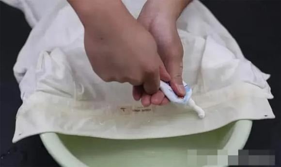 Đối với vết ố vàng cứng đầu trên cổ áo, áp dụng kem đánh răng kết hợp với dầu gội màu trắng. Ngâm cổ áo trong nước ấm, sau đó thoa dầu gội và kem đánh răng, chờ khoảng 10 phút và chà sạch.