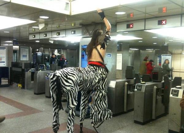 Một hành khách ăn mặc theo phong cách nhân mă.