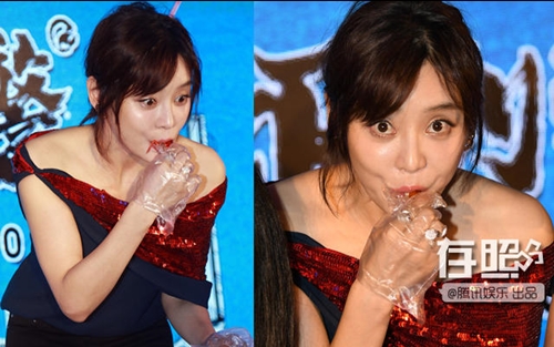 Hoàng Thùy gặp sự cố kém duyên trên màn ảnh. Các mỹ nữ Hoa ngữ cũng từng gặp chuyện tương tự. Angelababy, Triệu Lệ Dĩnh, Cảnh Điềm... ăn uống "bất chấp" hình tượng.