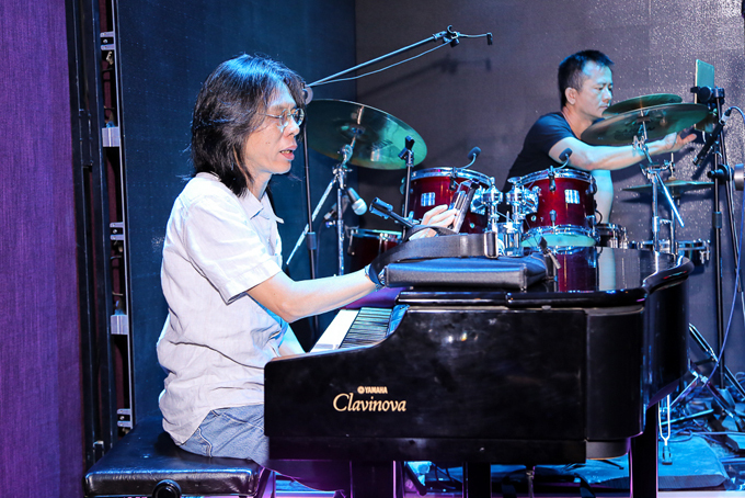 Danh ca Tuấn Ngọc cũng đến từ sớm và tṛ chuyện với mọi người trước khi khớp nhạc.