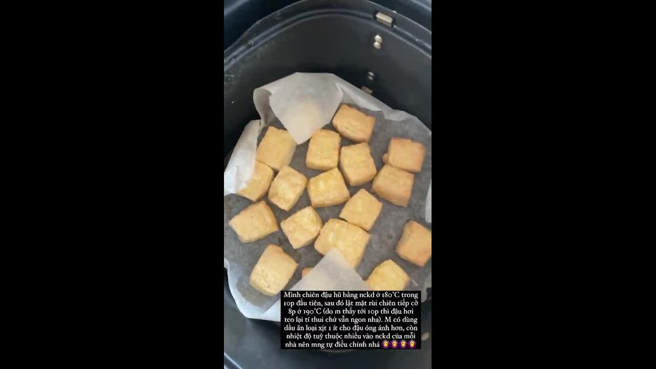 Mới đây, Tóc Tiên chia sẻ mẹo chiên đậu hũ gịn ngon bằng nồi chiên không dầu. Dùng nồi chiên sẽ giúp bạn tiết kiệm nhiều thời gian, miếng đậu vàng đều hai mặt, lại không bị dầu bắn khi chiên. Tuy nhiên, nếu bạn để ư th́ đậu chiên bằng nồi chiên không dầu rất dễ bị khô ráp, không mấy hấp dẫn. V́ thế, sau nhiều lần chiên Tóc Tiên rút kinh nghiệm, chiên đậu 2 lần, đồng thời xịt một chút dầu ăn lên đậu sẽ giúp miếng đậu óng ánh, trông đẹp hơn.