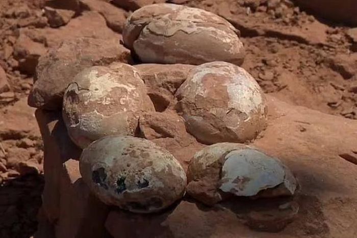 Ban đầu các chuyên gia ngỡ đây là ổ trứng cá sấu cổ đại, nhưng phân tích mới nhất khiến họ ngỡ ngàng phát hiện ra rằng, chúng thực ra là trứng khủng long hóa thạch bị chôn vùi 60 triệu năm trước.