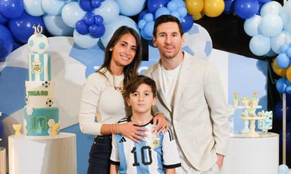 Antonella Roccuzzo bên chồng và con trai - Thiago - dịp sinh nhật cậu bé 10 tuổi, hồi đầu tháng 11. Cặp uyên ương bên nhau 15 năm, có ba con trai. Antonella đam mê thời trang, là gương mặt quen thuộc ở các tuần thời trang quốc tế.