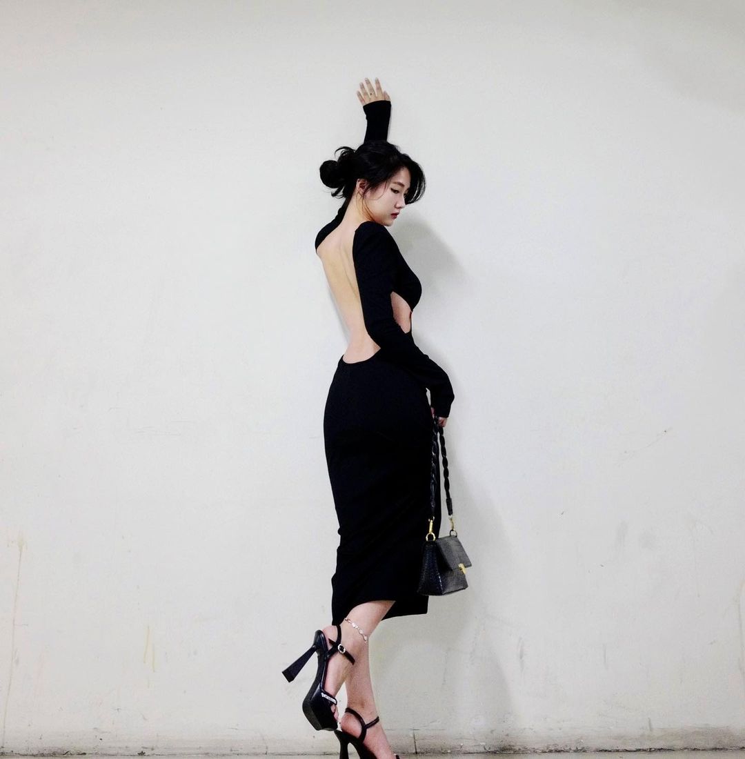 Mới đây, Kiều Trinh có đăng tải hình ảnh mới trên trang cá nhân. Cô diện thiết kế đầm ôm màu đen sang trọng với chi tiết hở lưng đồng thời khoét hai bên eo. Kiều Trinh chọn đôi sandal cao gót và túi xách "tone sur tone" với tổng thể.