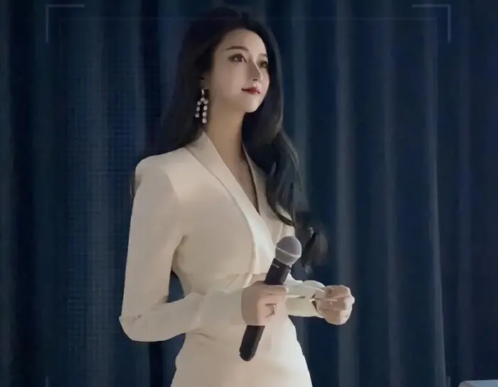Hình ảnh nữ giảng viên có vẻ ngoài như ngôi sao đang đứng giảng bài gây chú ý.