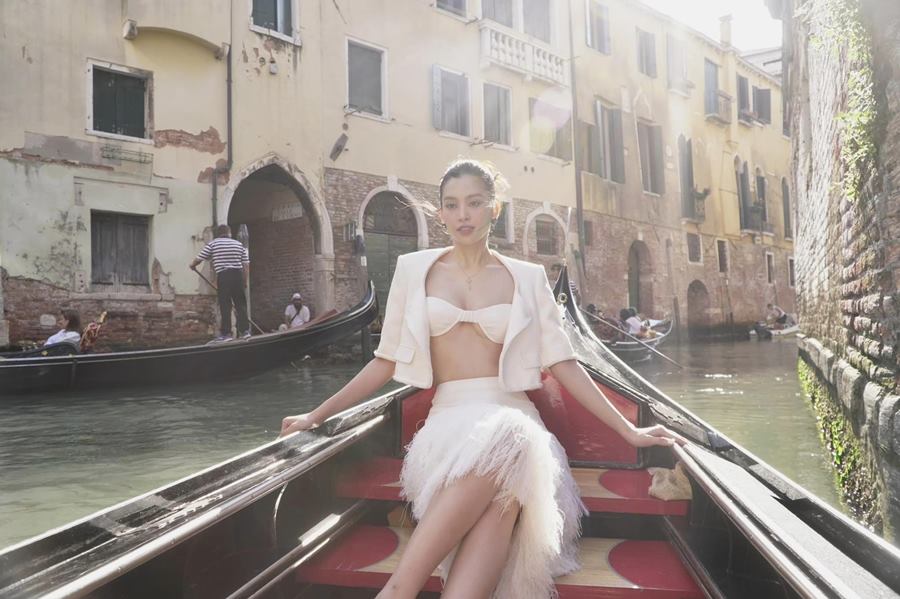 Mới đây, trên trang cá nhân, hoa hậu Tiểu Vy đăng tải loạt hình du ngoạn tại nước Ý. Cô mặc trang phục màu trắng thanh lịch của nhà thiết kế Lê Thanh Hòa. Trong loạt khoảnh khắc ngồi trên thuyền, thả trôi trên dòng sông thơ mộng của thành phố Venice, Tiểu Vy lăng xê mốt áo ngực đẹp tựa tranh.